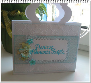 Dzisiaj karteczka ślubna z opakowaniem czyli taką prostą torebeczką.